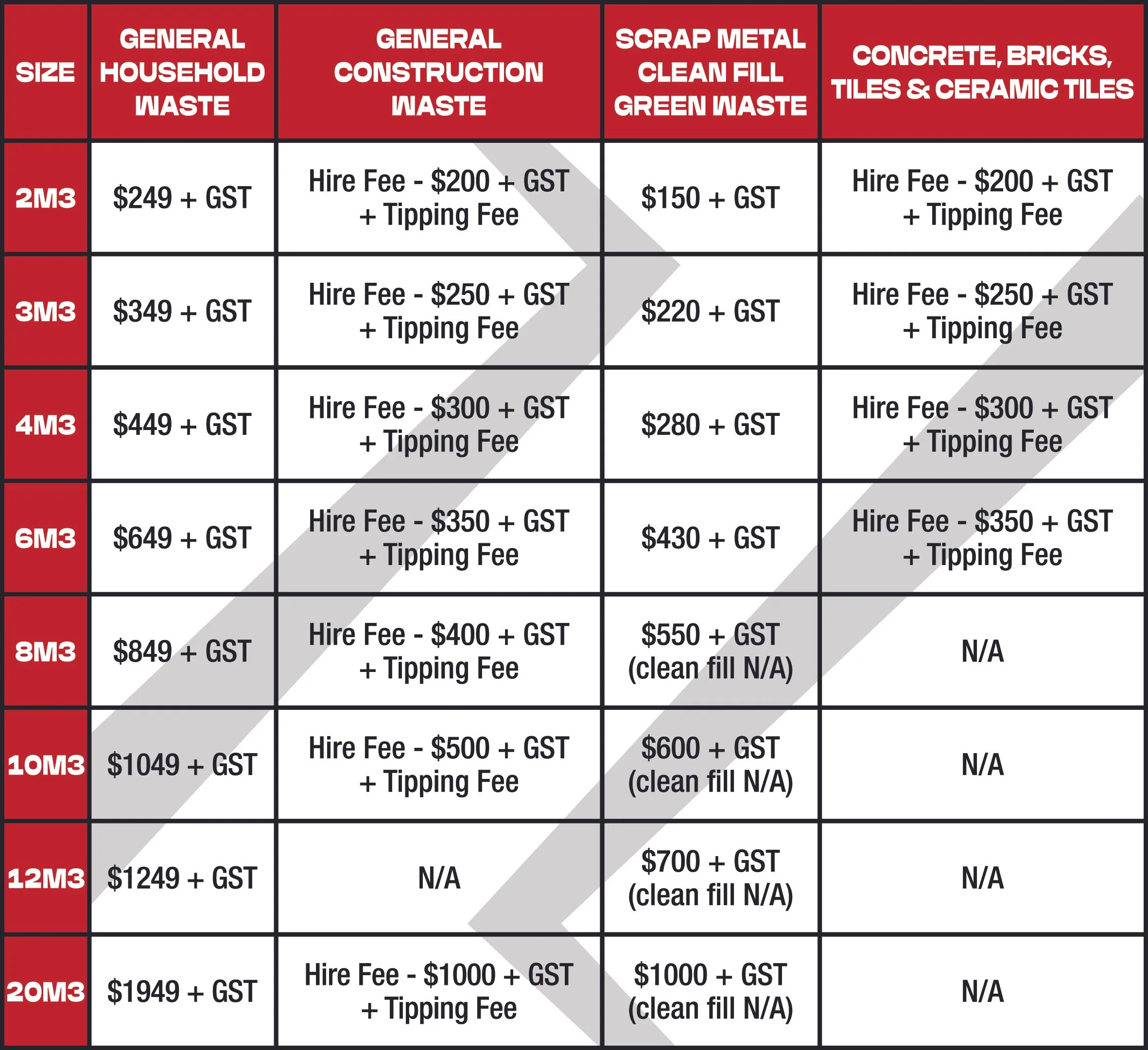 Price’s quoted are for a 7 business day hire. An additional fee of $10 per day may apply for subsequent days.